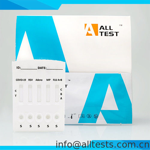 Тест антигена COVID-19/Influenza A+B/RSV/Adenovirus/M.pneumoniae комбинированный быстрый (носоглоточная пробирка) быстрый хроматографически immunoassay для качественного обнаружения SARS-CoV-2, инфлуензы a, инфлуензы b, дыхательных синцитиальных антигенов вируса (RSV), аденовируса и M.pneumoniae в носоглоточных образцах пробирки от индивидуалов с заподозренной инфекцией COVID-19/Influenza/RSV/Adenovirus/M.pneumoniae совместно с клиническим представлением и результатами других лабораторных исследований.